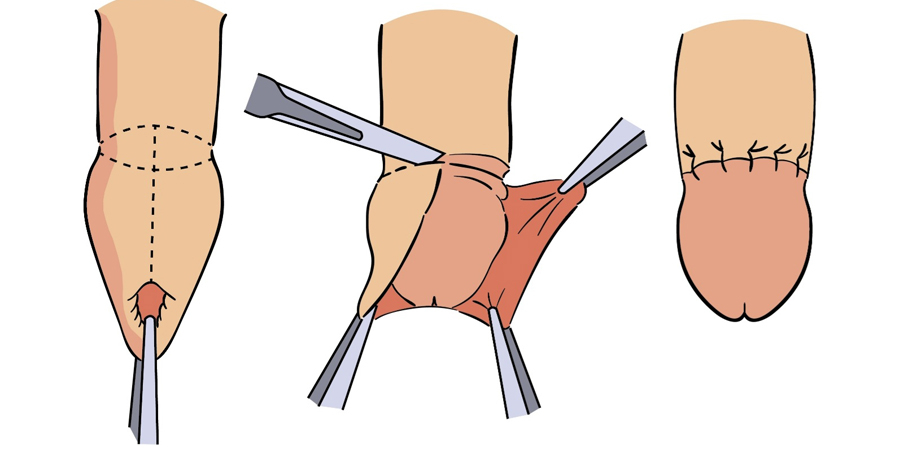 • Η χειρουργική αφαίρεση της ακροποσθίας, του άκρου του δέρματος που καλύπτει το πέος